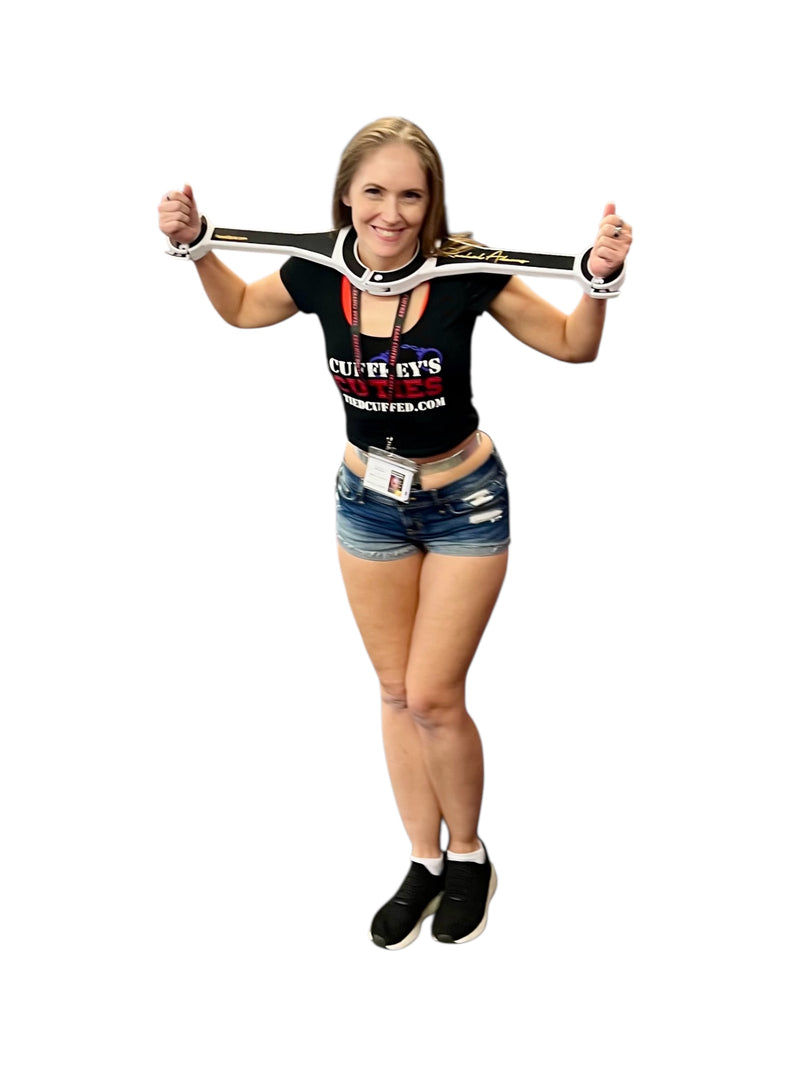 Jazzyyluxx mit dem Hand-Fuß-Pranger